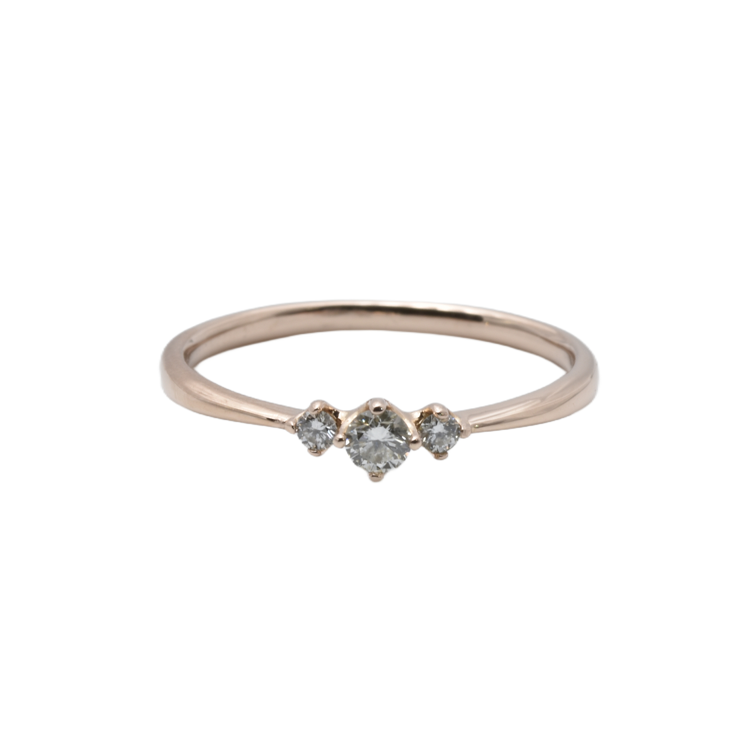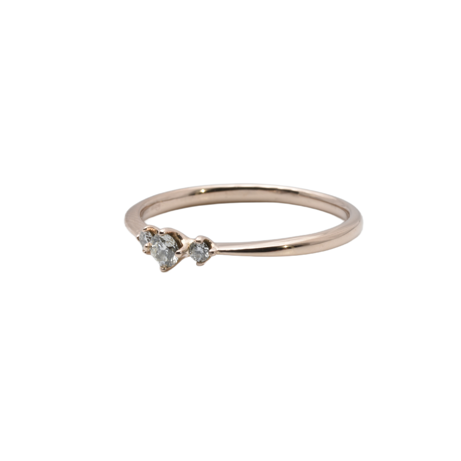 Außergewöhnlicher Ring aus Rosé- bzw. Rotgold, besetzt mit drei funkelnden Brillanten, die in einer raffiniert ausgearbeiteten Krönchenfassung stilvoll präsentiert werden.
