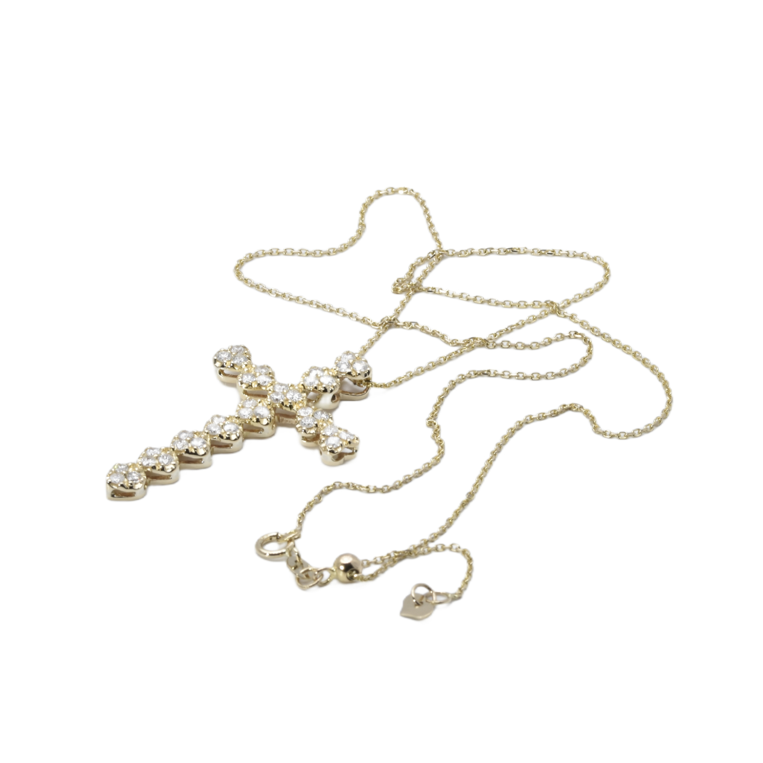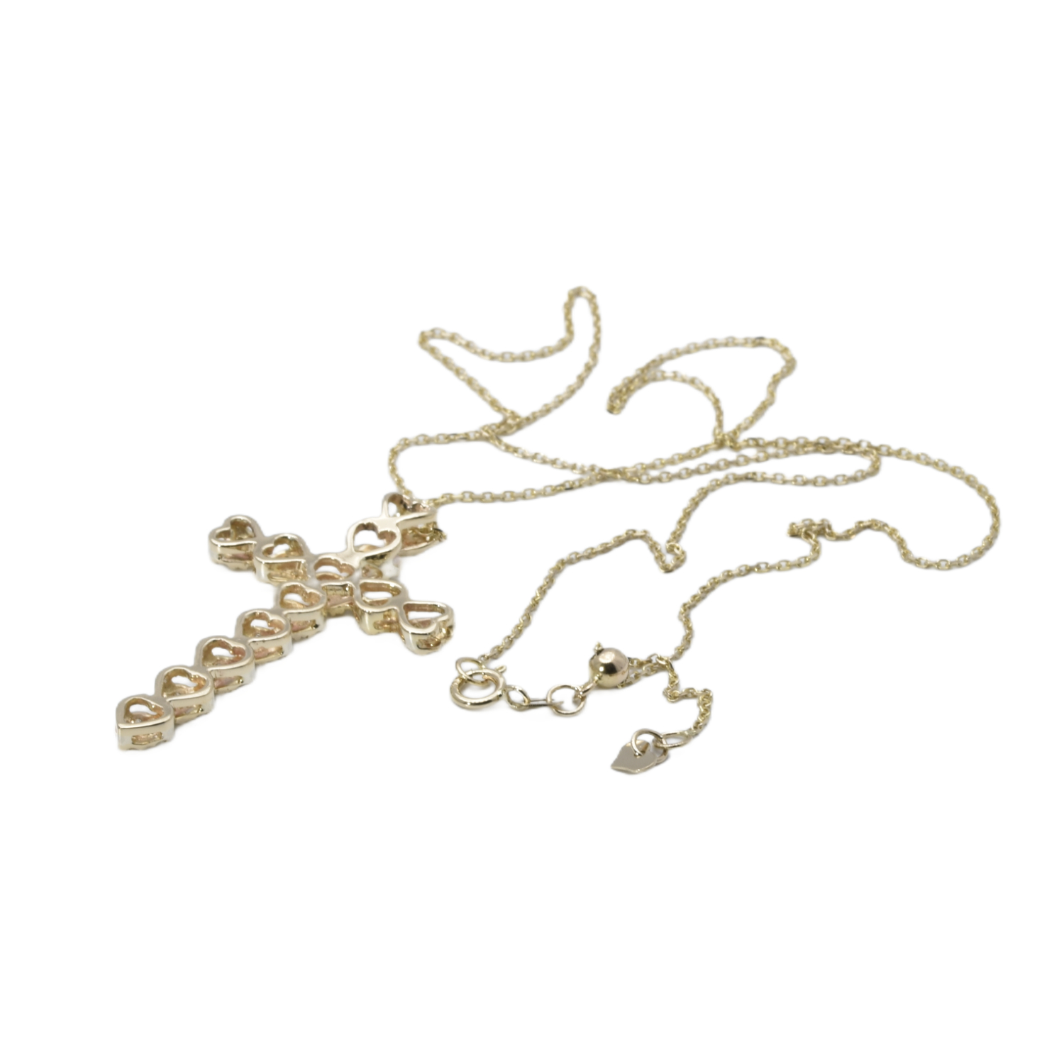 Die funkelnden Steine sind herzförmig angeordnet und verleihen dem Kreuz eine besondere emotionale Symbolkraft. Als liebevolles Detail befindet sich zudem ein Herz als Anhänger an der Kette, das das Design harmonisch ergänzt und die Bedeutung von Glaube und Liebe stilvoll miteinander verbindet.