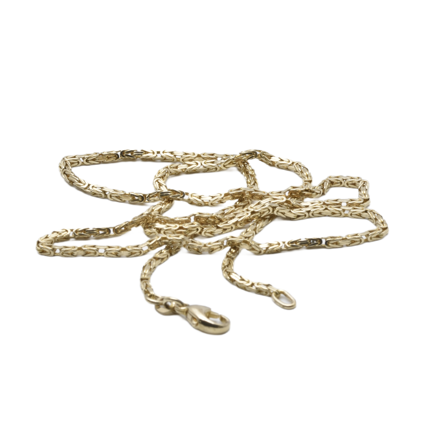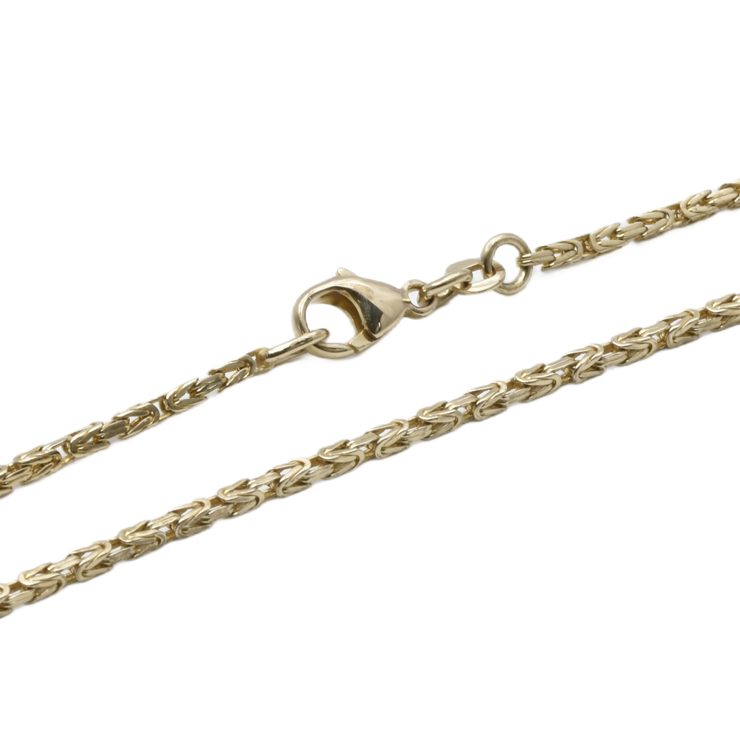 Feine Königskette aus Gelbgold in einer besonders zierlichen Ausführung. Trotz ihrer filigranen Erscheinung überzeugt sie mit der typischen, hochwertigen Flechtstruktur dieser klassischen Kettenart.