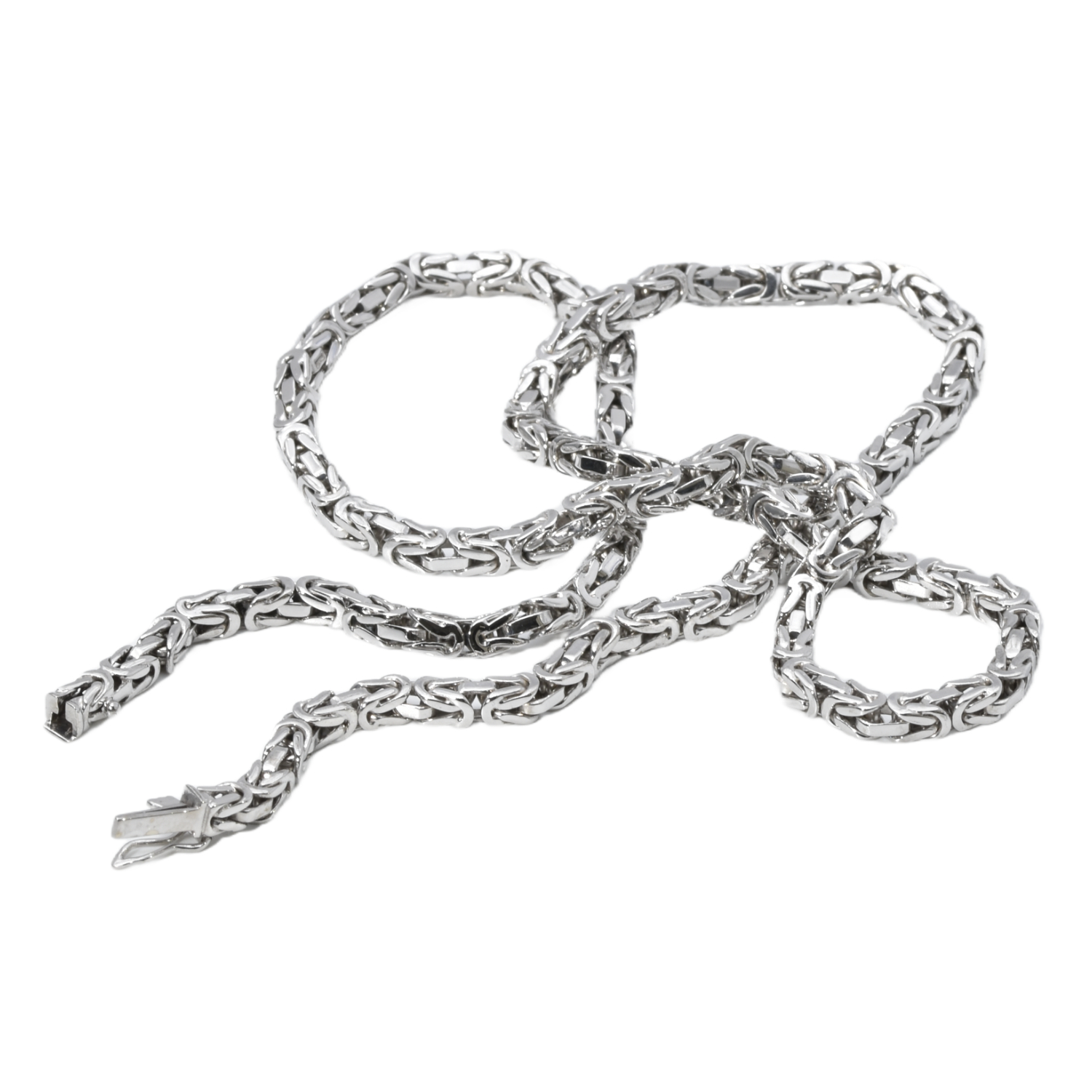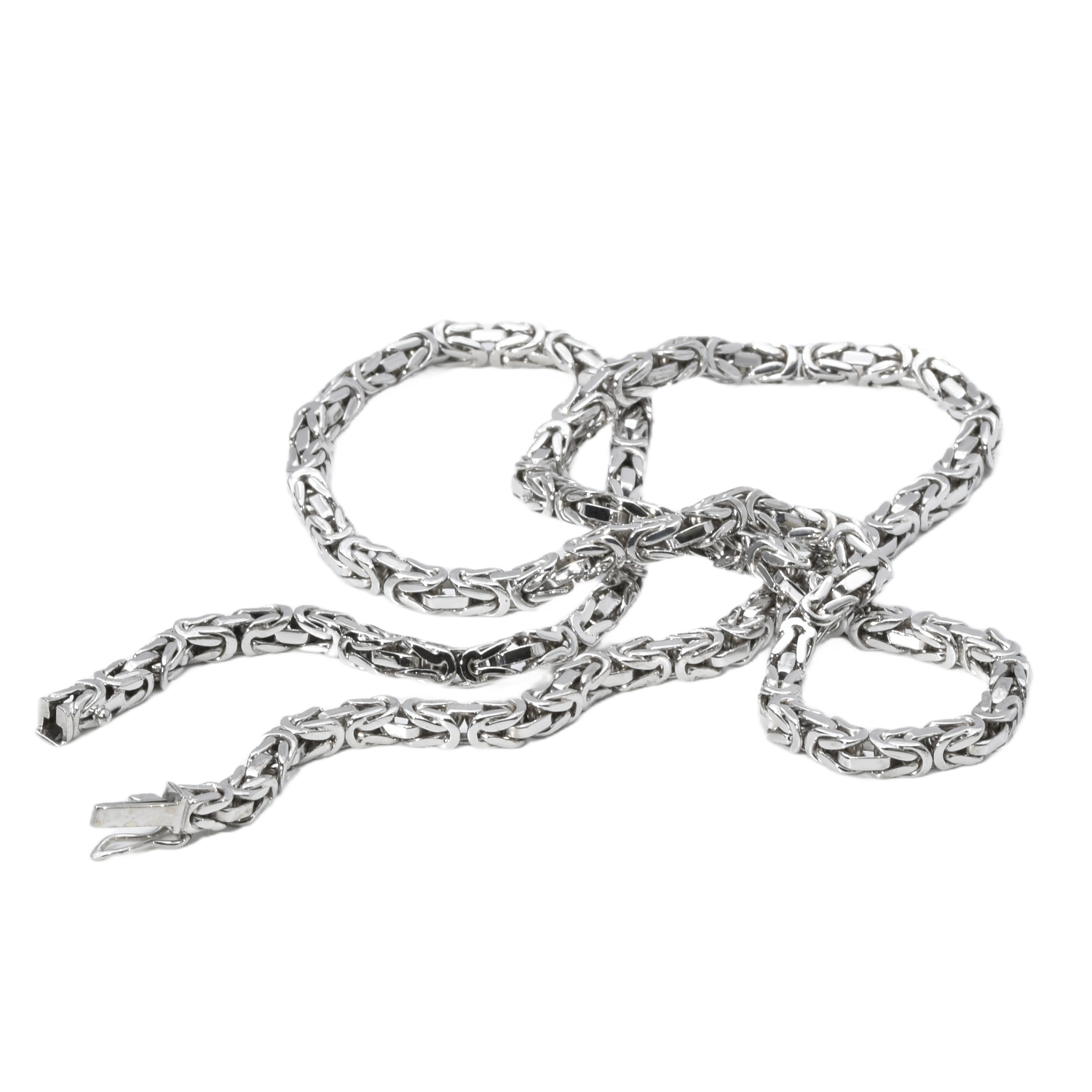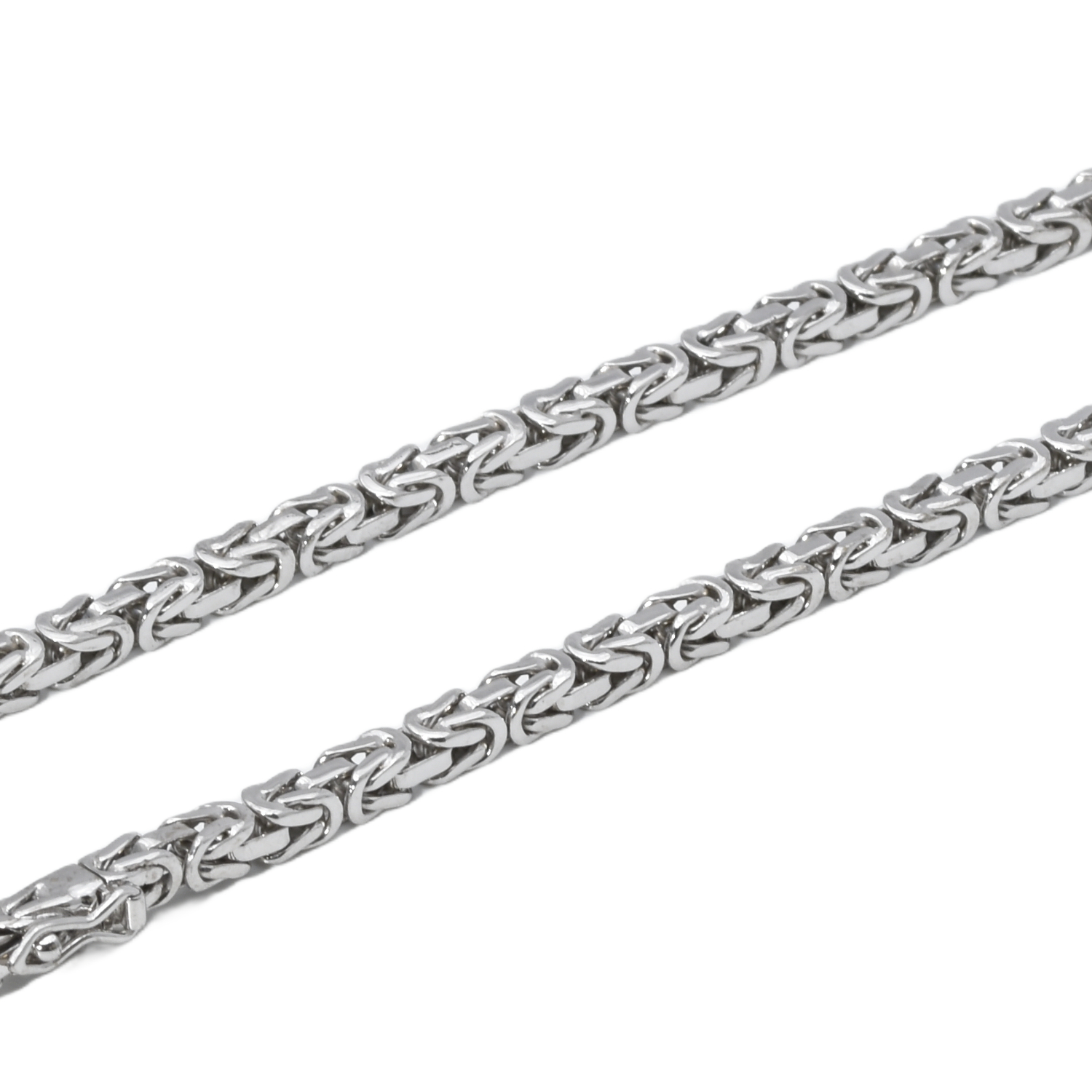 Diese Weißgold Königskette überzeugt durch ihre kompakte, massive Kettenart und eine besonders hochwertige Verarbeitung. Das markante Königsketten-Muster verleiht ihr eine kraftvolle, elegante Ausstrahlung mit außergewöhnlicher Präsenz.
