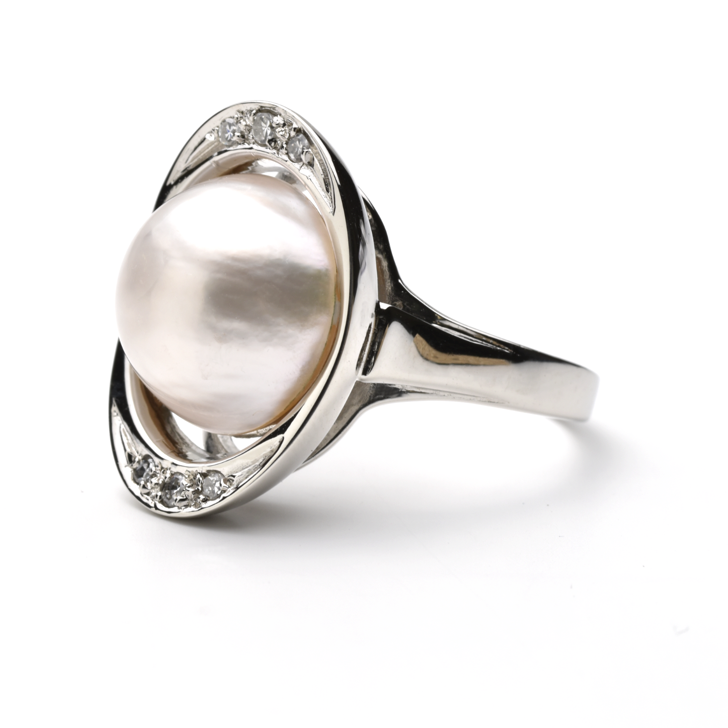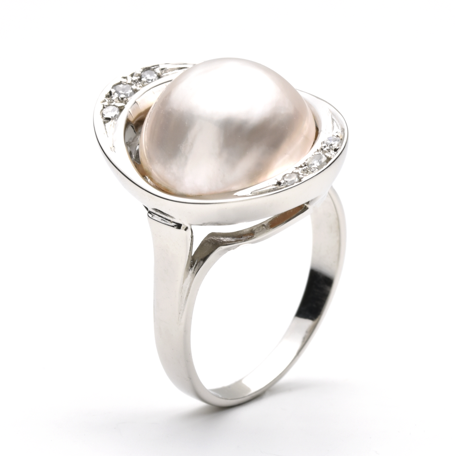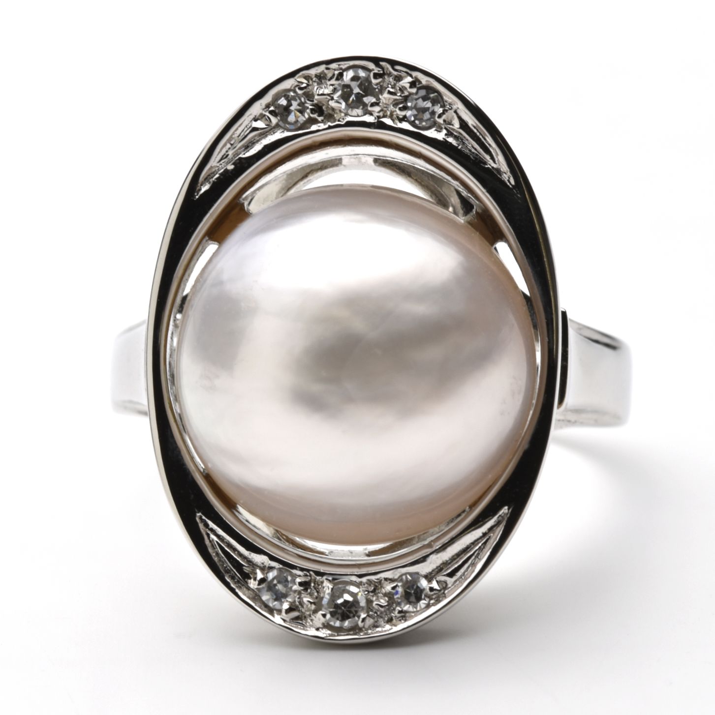 Ringgröße: 58 | weiße Halbperle | 6 Diamanten zus. 0,072 ct.
