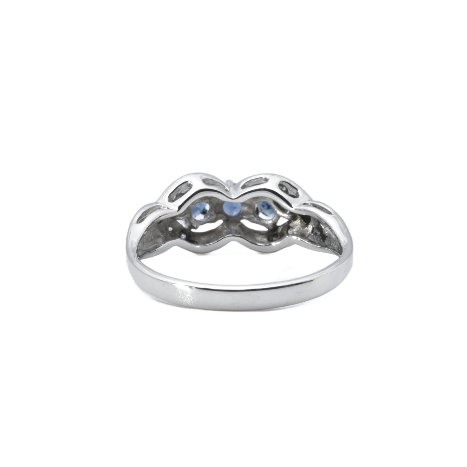 Weißgoldring mit geflochtenem Design und blauem Akzent