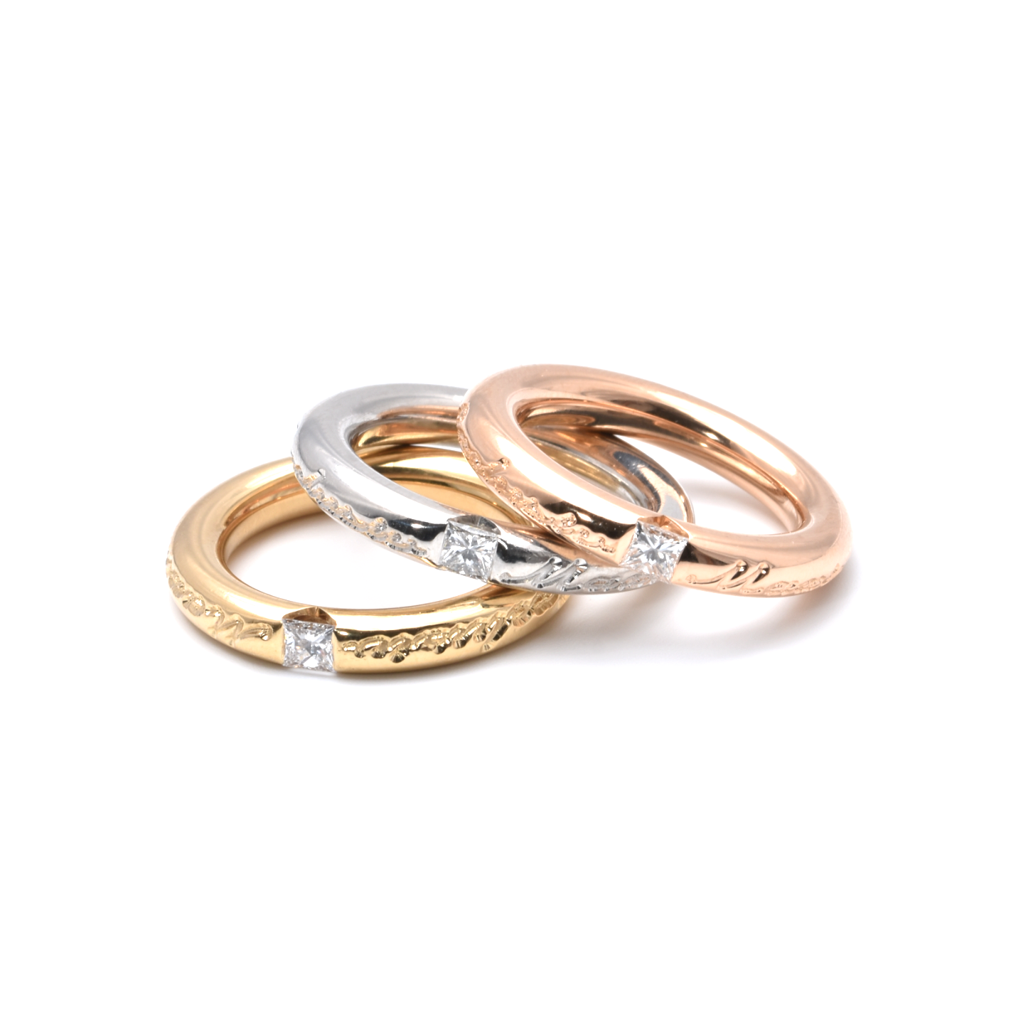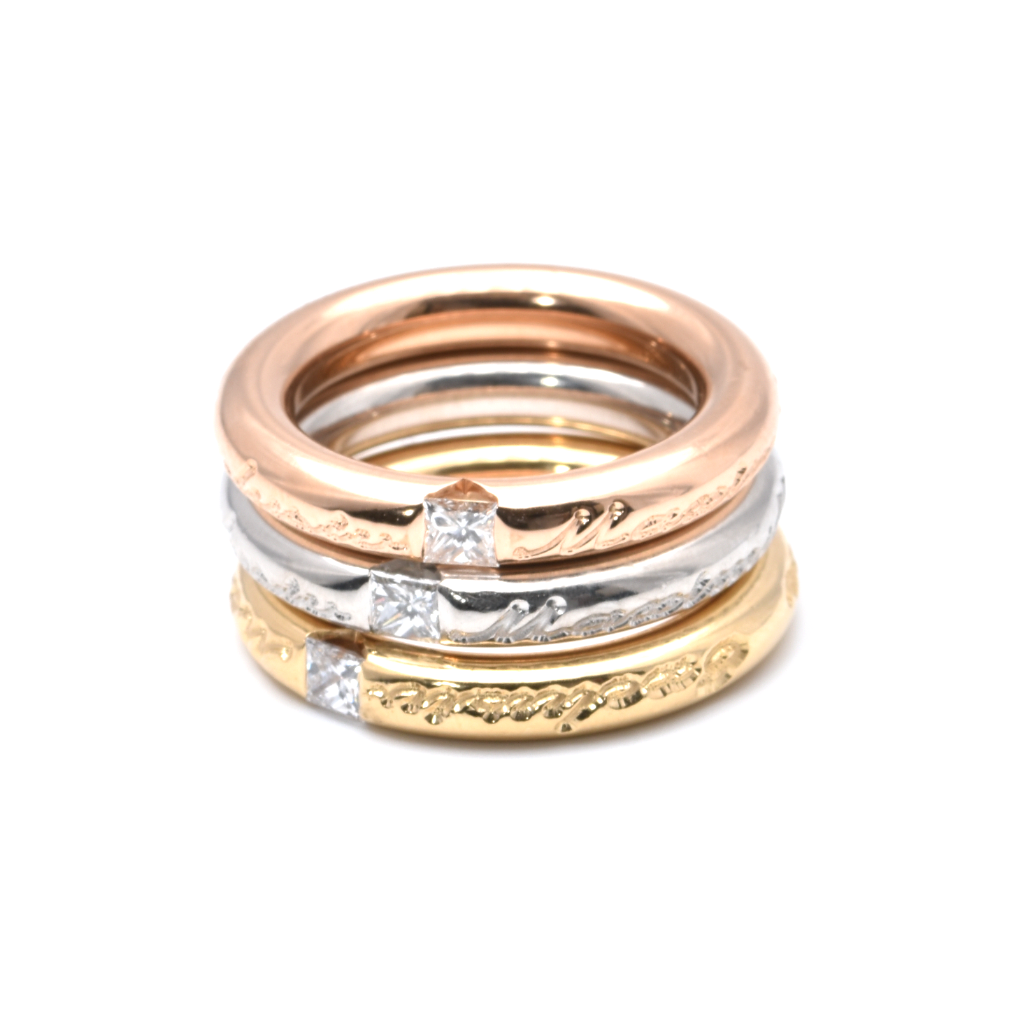 3 Ringe | 750/000 Gold | Tricolor | Princess Diamanten