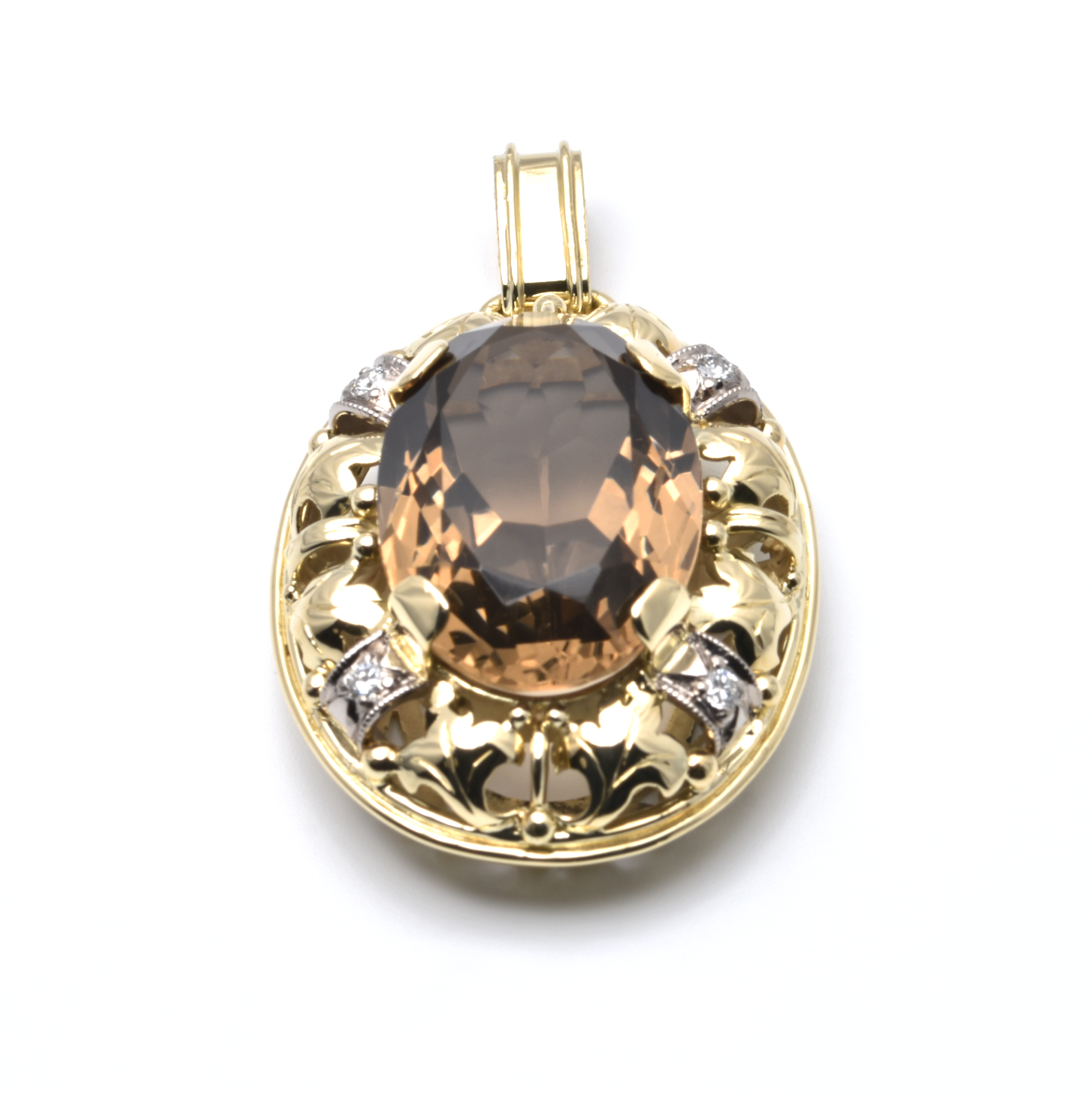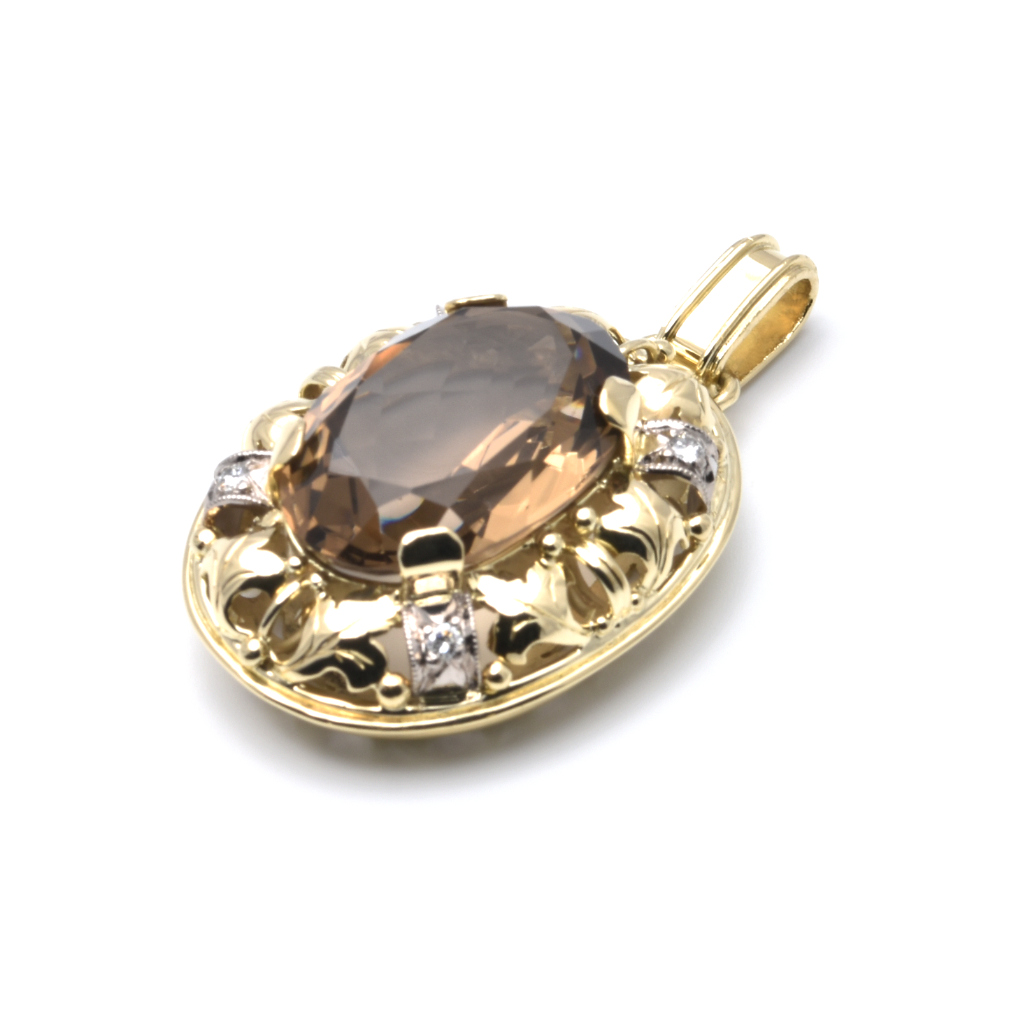 Anhänger | 585/000 Gelbgold | Rauchquarz | Brillanten | Vintage
