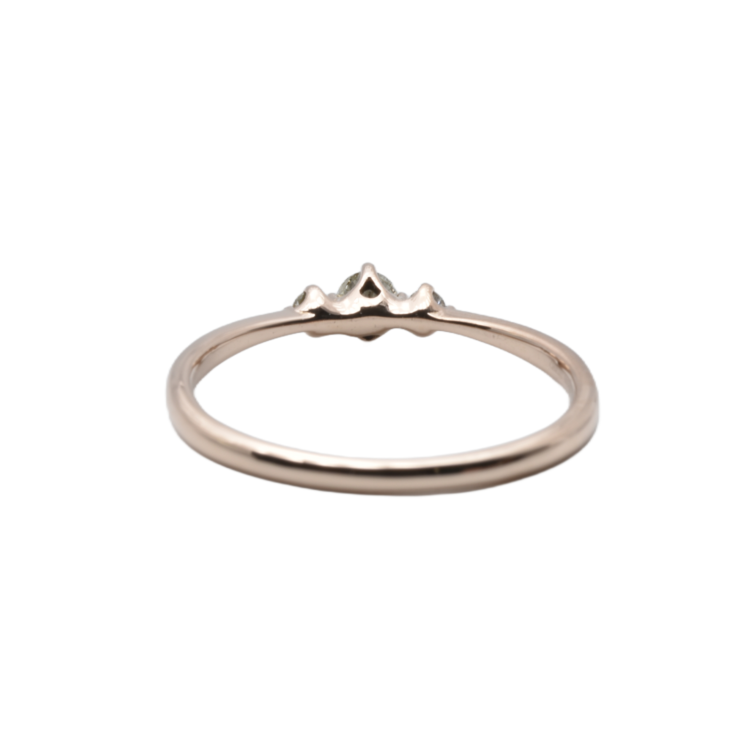 Außergewöhnlicher Ring aus Rosé- bzw. Rotgold, besetzt mit drei funkelnden Brillanten, die in einer raffiniert ausgearbeiteten Krönchenfassung stilvoll präsentiert werden.