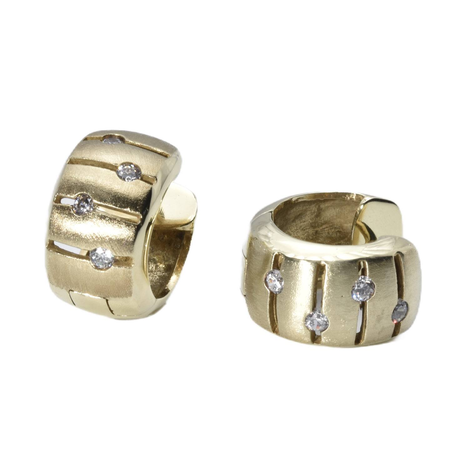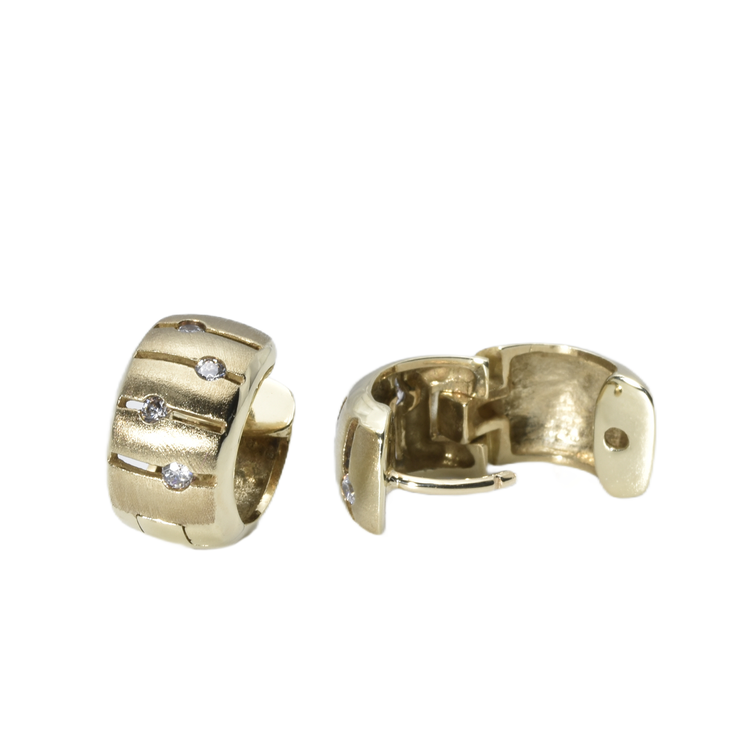 Diese edlen Klappcreolen aus 333 Gelbgold begeistern durch ihr raffiniertes Design und funkelnde Zirkonia-Steine. Die Steine sitzen in einer mattierten Oberfläche, wodurch ihre besondere Brillanz intensiv zur Geltung kommt und ein faszinierendes Lichtspiel entsteht.