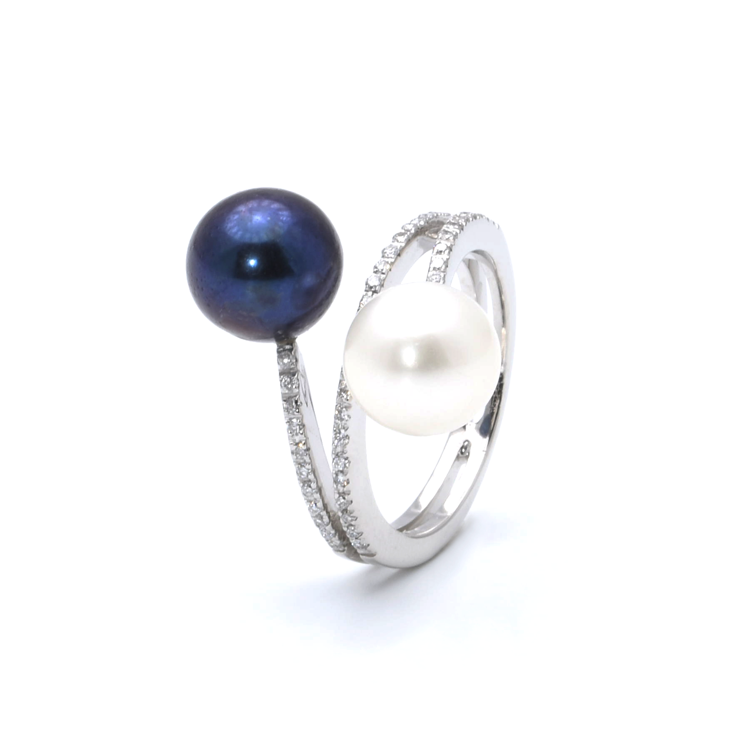 Ringgröße: 54 | 44 Brillanten zus. 0,22 ct. | 2 Perlen